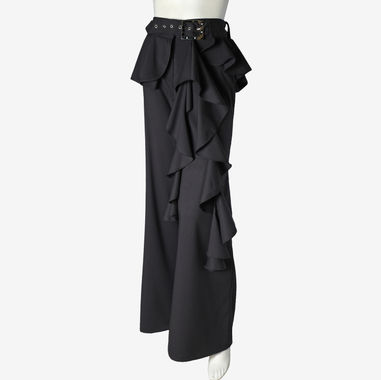 Брюки клёш со съёмной баской. Образец выполнен из ткани Sophia. Состав: 20% вискоза, 78% полиэстер, 2% эластан.